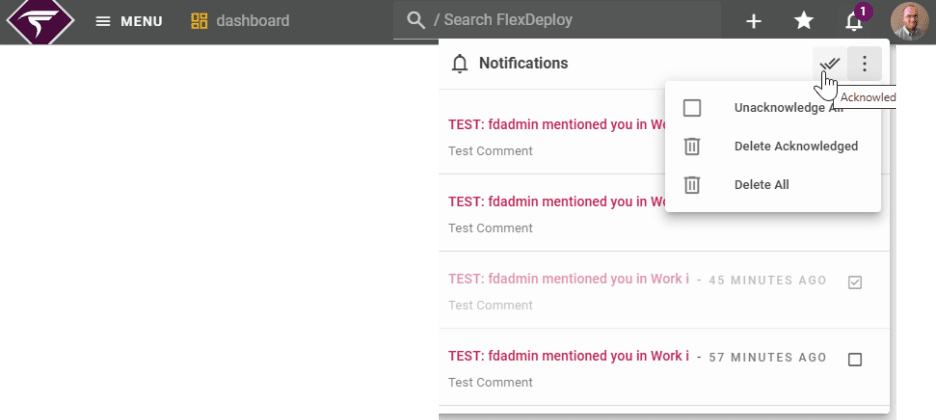 - Automatic Purging: FlexDeploy automatically removes notifications after a set period, whether you’ve read them or not.